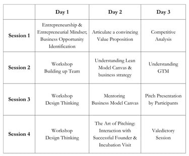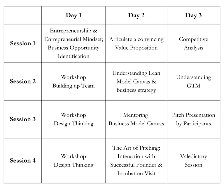By the end of this bootcamp, students will get knowledge about idea generation and through knowledge sessions and relevant activities which can help them practically understand the methodology and vision behind knowledge sessions, giving them a 360-degree approach towards startup building.
